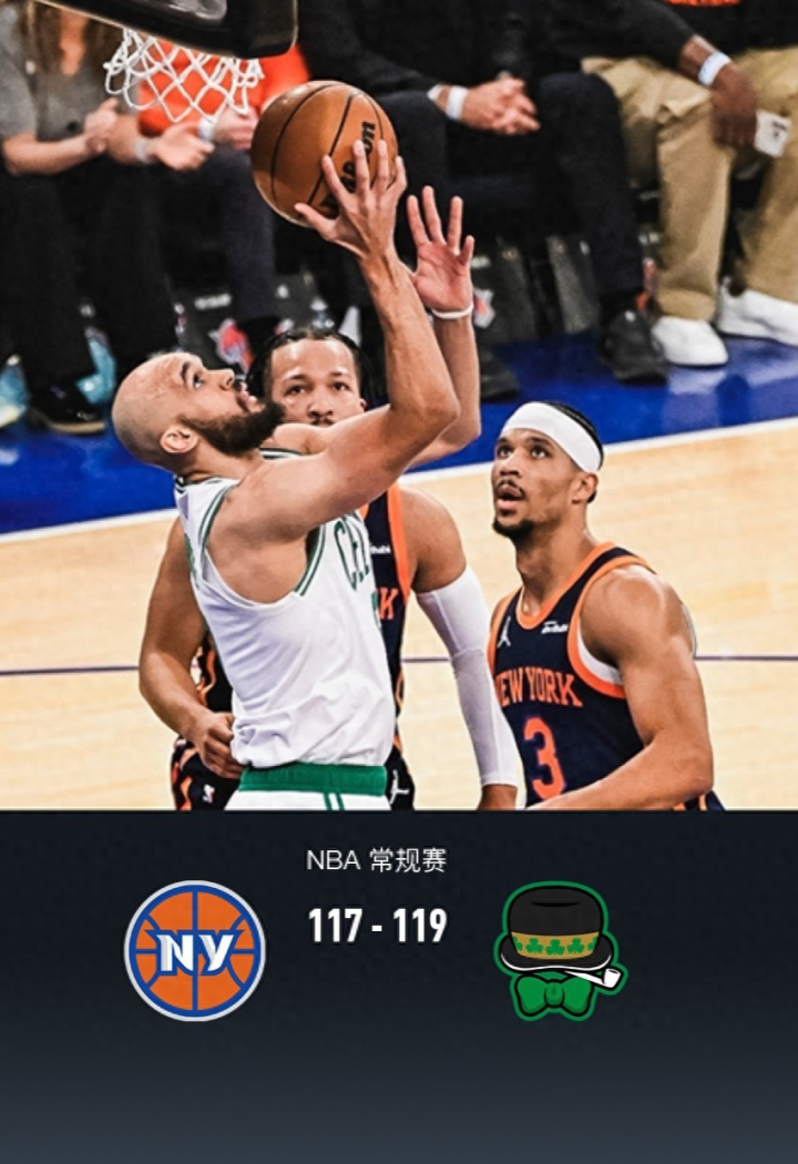 加时赛的较量更加惊险刺激。双方球员都展现出了极高的竞技水平,每一次进攻都充满了力量和技巧。凯尔特人关键时刻的稳定发挥显示出了球队的实力和经验。最终,凯尔特人以119比117战胜了主场作战的尼克斯,赢得了这场艰难的胜利。